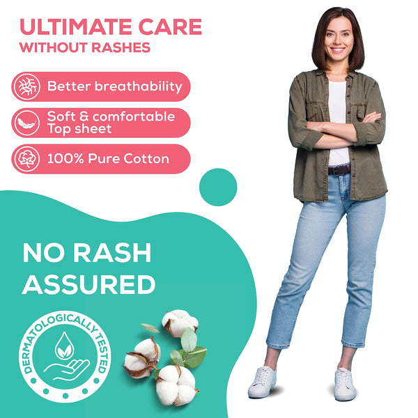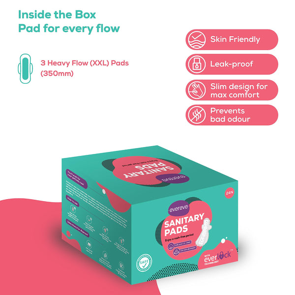 Evereve 100% US Cotton Ultra thin Rash Free Sanitary Pads, 24 Pads, Heavy Flow-XXL, Unscented, Leakproof, Zero Toxin, 50% Wider Back, Dermatologically Tested, Individual Disposal Bags