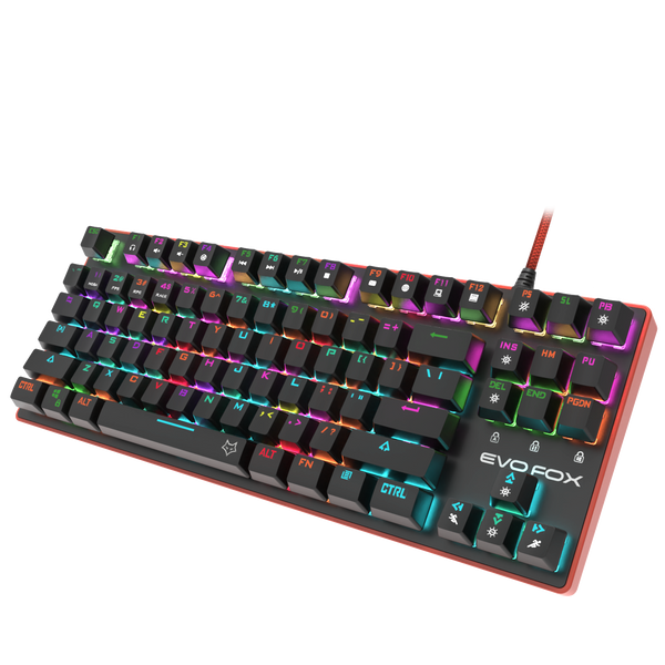 EvoFox Katana Pro Mechanical Gaming Keyboard is a Strong Pro Level TKL Mechanical Keyboard - with Silent Red Keys, Tru 16 Million RGB Lights Efficient Design and is Fully Customizable. Comes with a Powerful Full Featured Software with onboard Memory - so customize it once and use it anywhere. Create Powerful Macros, Program ANY key, and Customize the Lighting patterns. Also comes with 4 customizable Game Mode LED Presets for Instant Battle Readiness.