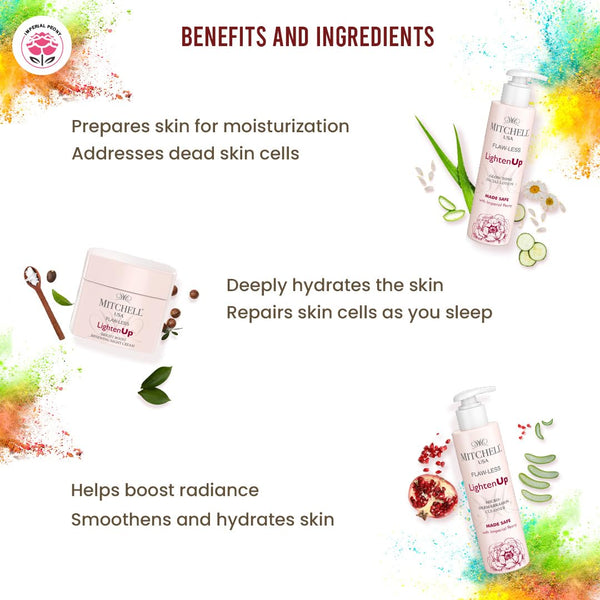 Exclusive Holi Skincare Combo: Mitchell USA LightenUp Cleanser, Glow Tone Lotion, Night Cream - Radiant Skin Regimen