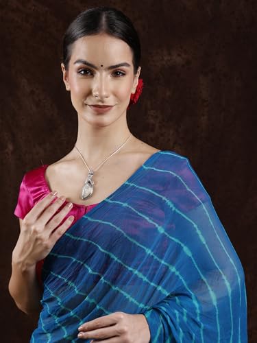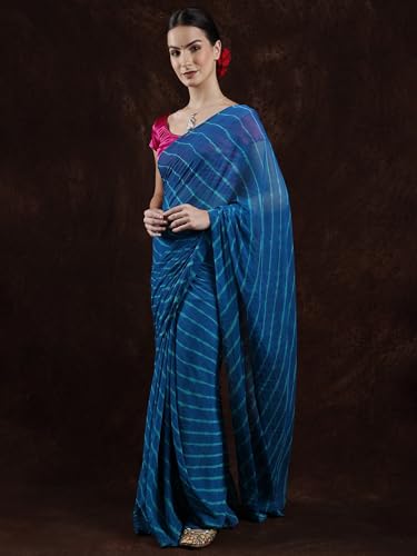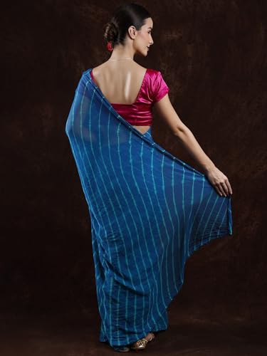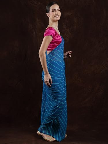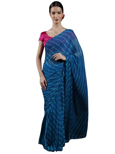 Exotic India Leharia Tie-Dye Sari from Jodhpur, Crystal Teal, Free Size