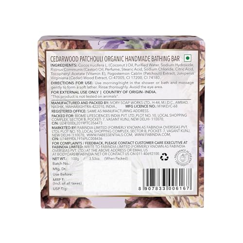 8x Fabessentials Cedarwood Patchouli Handmade Bathing Bar | 100% Organic | with Coconut Oil | Cleanses, Nourishes & Brightens Skin | Vegan & Palm-Oil Free - 100 gm Pack of 8