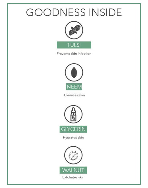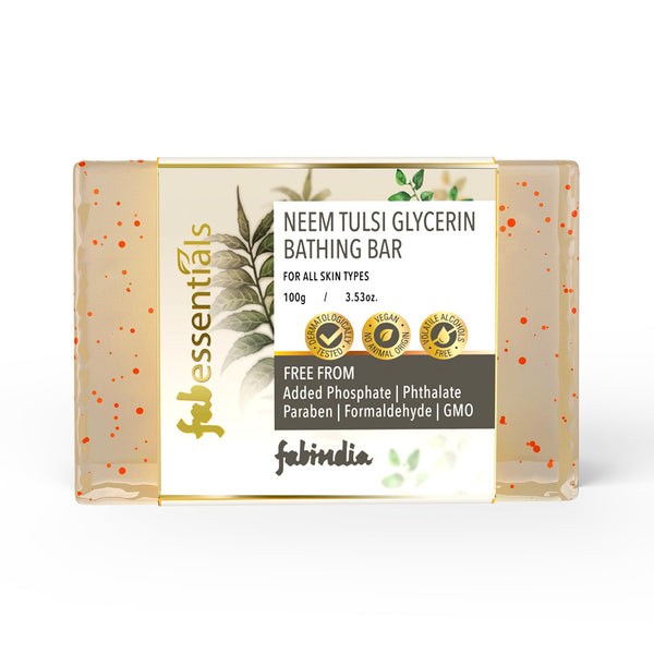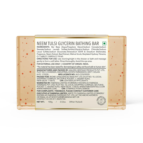 8x Fabessentials Neem Tulsi Glycerin Bathing Bar | with Walnut Granules | for Cleansing, Nourishing and Rejuvenating Skin | Vegan & Toxin Free - 100 gm Pack of 8