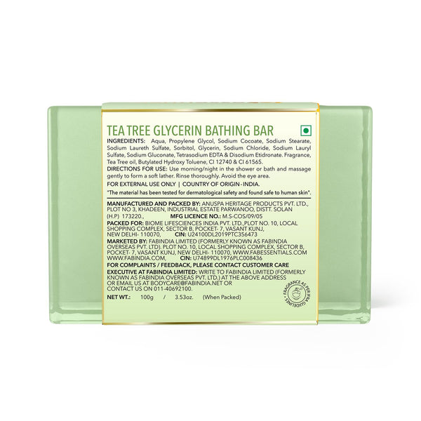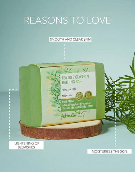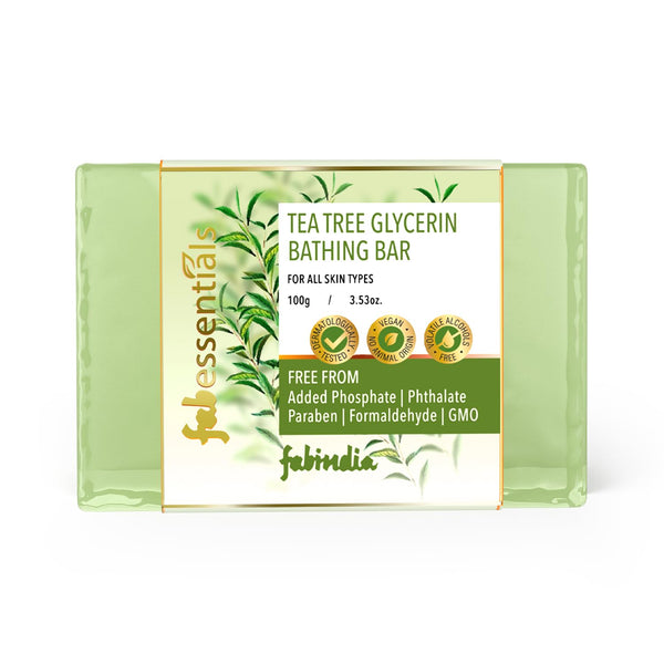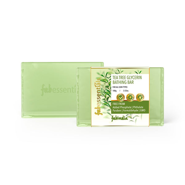 8x Fabessentials Tea Tree Glycerin Bathing Bar | with Natural Bioactives | Cleansing, Refreshing and Nourishing | Vegan & Toxin Free - 100 gm Pack of 8