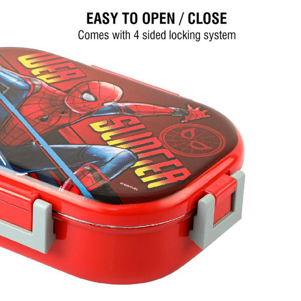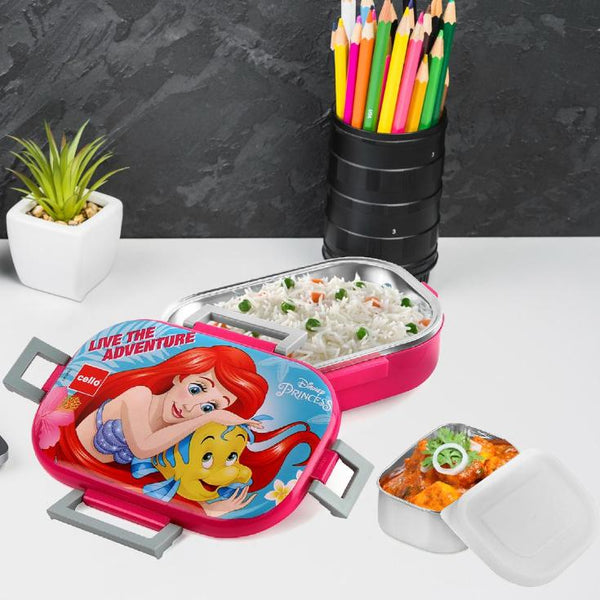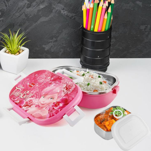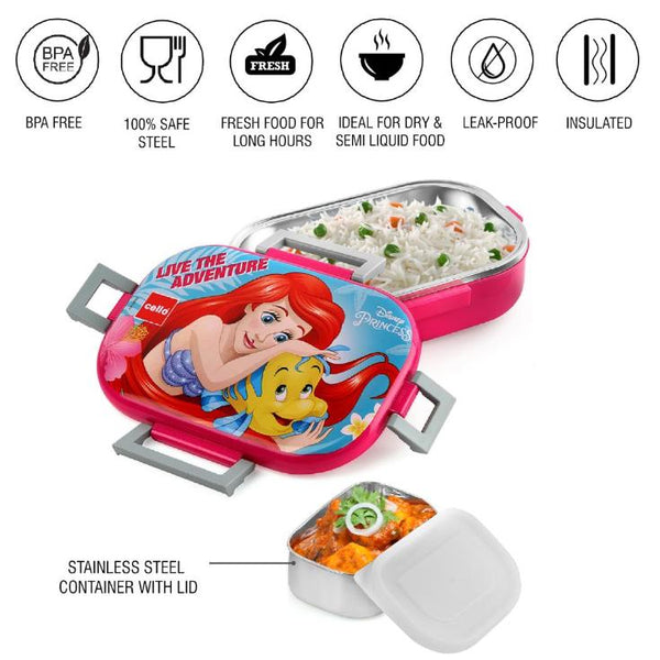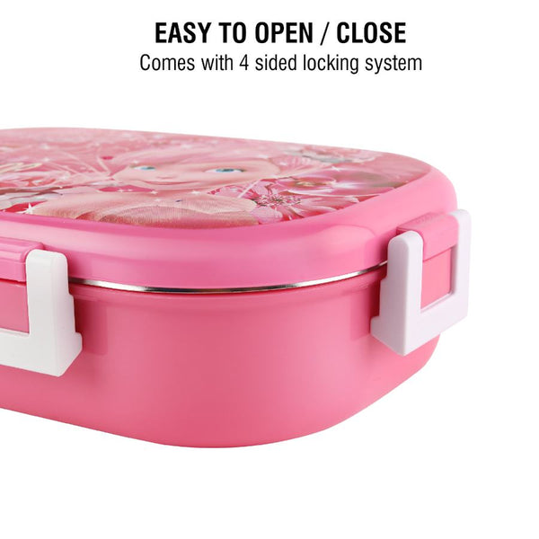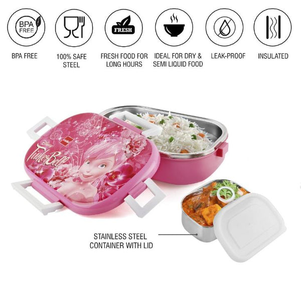 Introducing the Feast Deluxe Insulated Lunch Box for Kids with exciting designs like Spiderman, Little Mermaid and Tinker Bell. Our lunch box is designed to delight both parents and kids, ensuring meals are not only delicious but also fresh. The set includes a small steel container nestled inside, alongside convenient clip locks, guaranteeing a leak-proof experience. Crafted from high-quality stainless steel, this insulated lunch box keeps food irresistibly fresh for extended periods. Made with 100% food-grade, virgin plastic that's BPA-free, ensuring safety with every bite. Dishwasher safe for added convenience. Available in vivid Red, Pink and Purple making lunchtime an adventure every day!