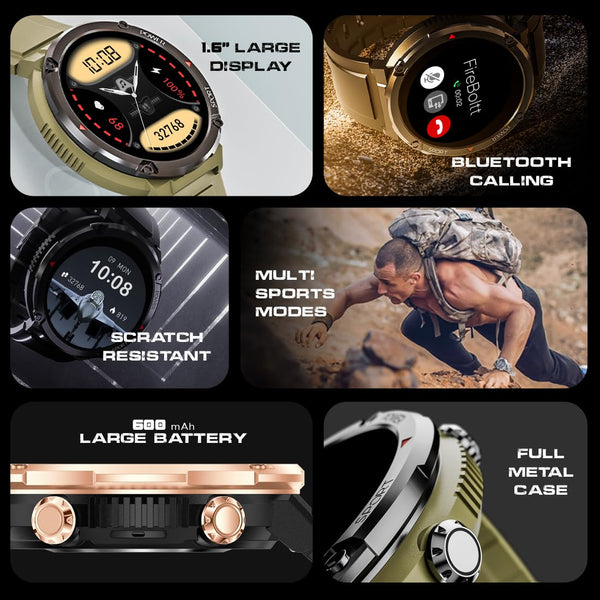 Fire-Boltt Armour, Sporty Rugged Outdoor Smart Watch with a 1.6" High-Resolution HD Display, Shockproof Metal Body, Bluetooth Calling 600 mAh Battery