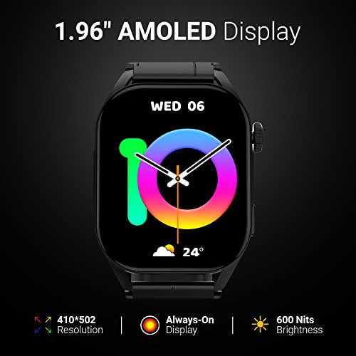 Fire-Boltt Emperor AMOLED 1.96" Display, Bluetooth Calling Smartwatch, AI Voice Assistant, 100+ App Based Sports Modes, Rotating Crown with Always On Display (Black)