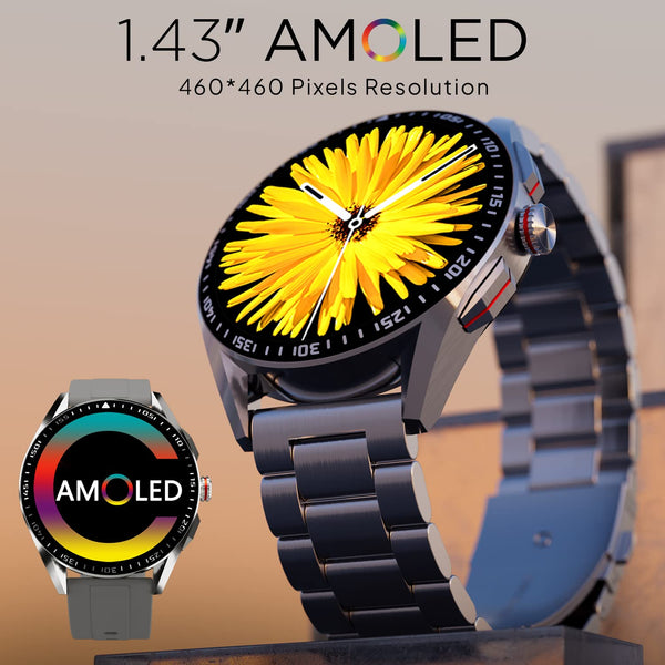 Fire-Boltt Invincible Plus 1.43" AMOLED Display Smartwatch with Bluetooth Calling, TWS Connection, 300+ Sports Modes, 110 in-Built Watch Faces, 4GB Storage & AI Voice Assistant (Silver)