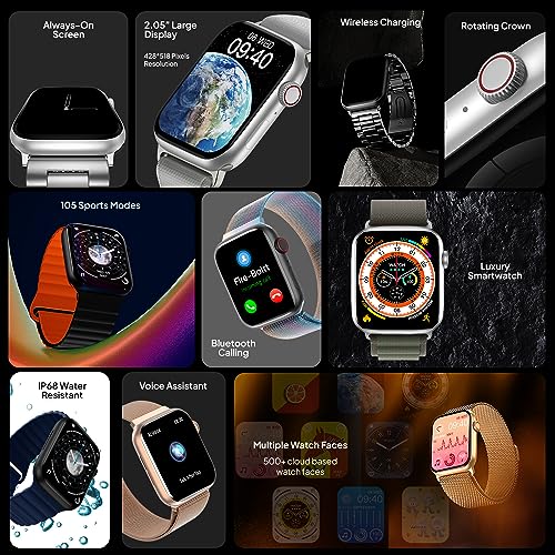 Fire-Boltt Newly Launched Vogue Large 2.05" Display Smart Watch, Always On Display, Wireless Charging, App Based GPS with Bluetooth Calling & 500+ Watch Faces (Blue)