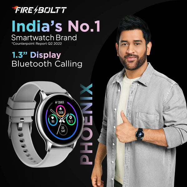 Fire-Boltt Phoenix Smart Watch with Bluetooth Calling 1.3",120+ Sports Modes, 240 * 240 PX High Res with SpO2, Heart Rate Monitoring & IP67 Rating (Silver Grey)