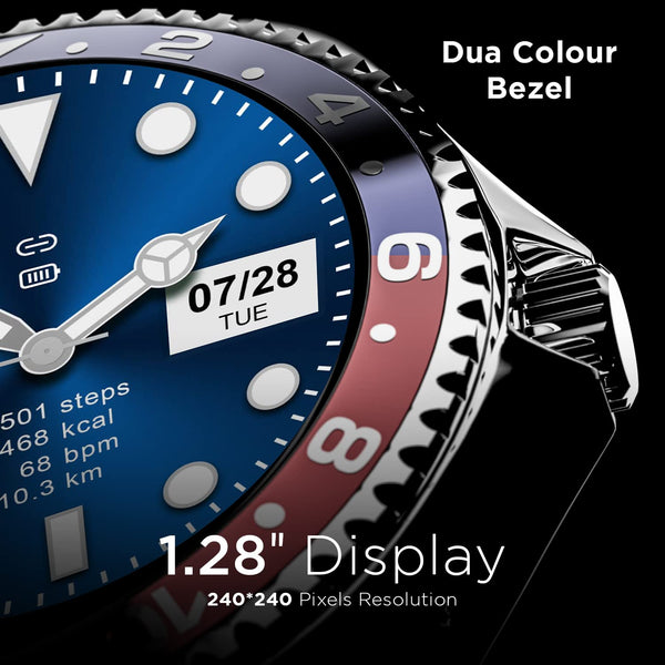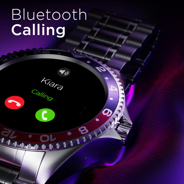 Fire-Boltt Quantum Luxury Stainless Steel Design 1.28" Bluetooth Calling Smartwatch with High Resolution of 240 * 240 Px & TWS Connection, SpO2 Tracking with 100 Sports Modes (Black Red)