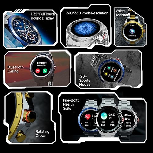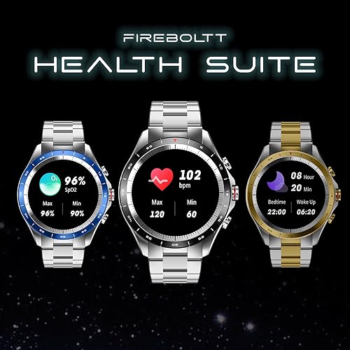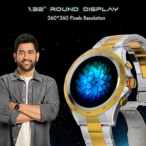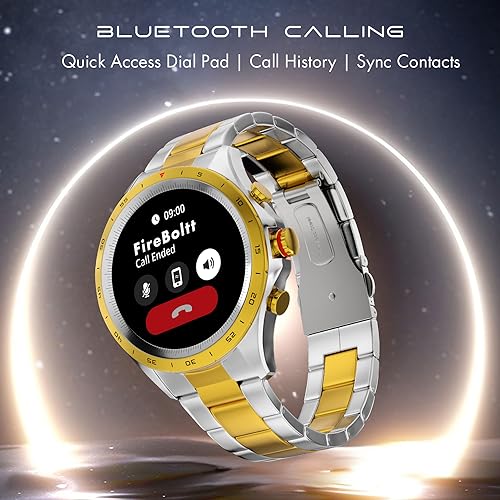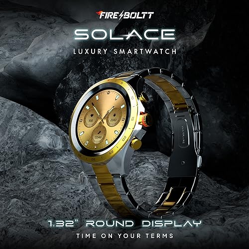 Fire-Boltt Solace Luxury Stainless Steel Smart Watch, 1.32" (33.5mm) Display 360 * 360 px high Resolution with 60Hz Refresh Rate, Bluetooth Calling & 360 Health Monitoring (Gold Silver)