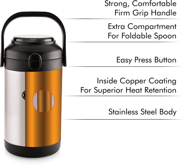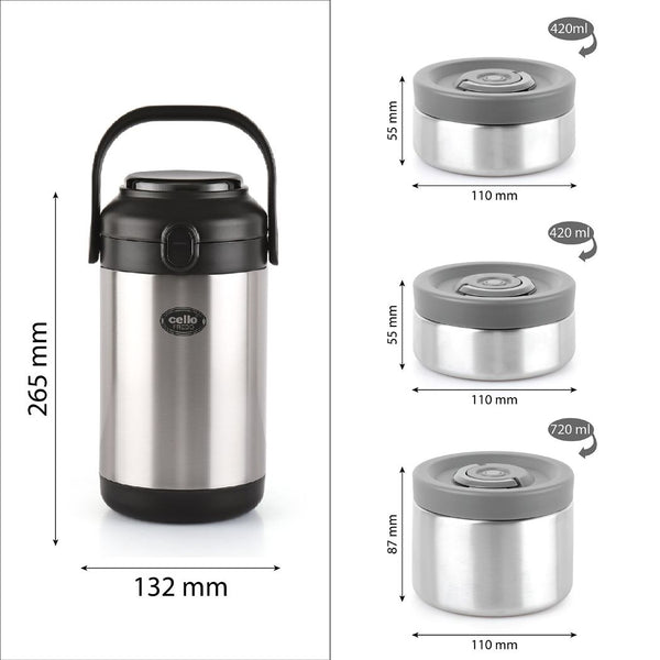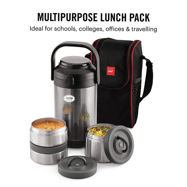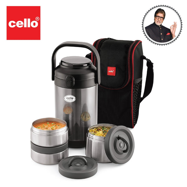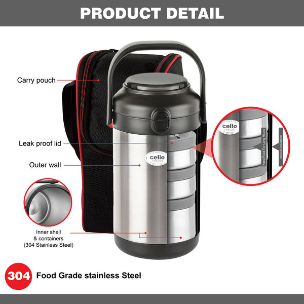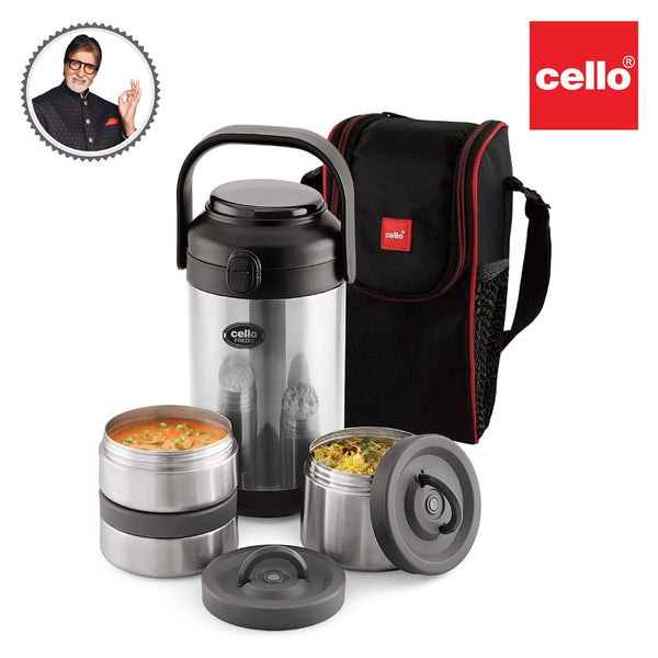Introducing the Fredo Double Walled Insulated Lunch Box, a set of three exceptional lunch carriers designed for those who appreciate the warmth and freshness of homemade meals on the go. These leak-proof containers are perfect for carrying a variety of dishes, from dals to sabjis, and they are tough, sturdy, and crafted from 100% food-grade materials that won't affect the taste or aroma of your food. The airtight, silicone-sealed lids lock in freshness and moisture, preventing spills. Moreover, the double-walled insulation keeps your food fresh for extended periods. With its easy-to-clean stainless steel construction and convenient size, it effortlessly fits into briefcases, school bags, or handbags, making it a reusable and durable solution for all your meal-carrying needs.