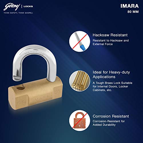 Godrej Locking Solutions and Systems Imara 80mm Brass Padlock 3 Keys (Brown, Painted Finish)