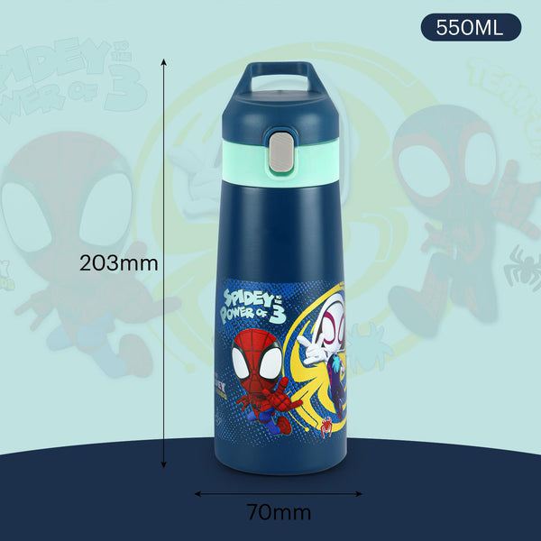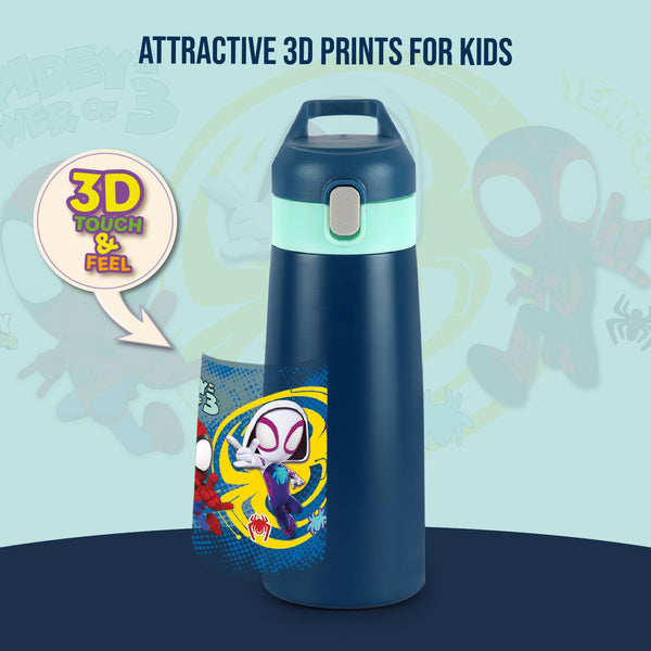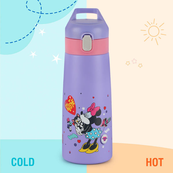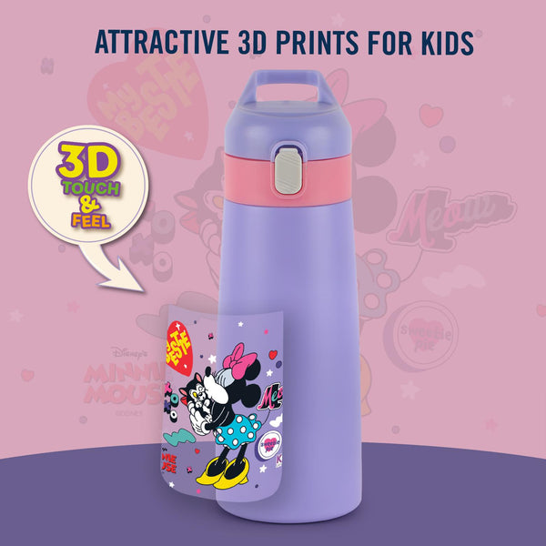 The Cello Kidzbee Gulp Thermosteel Kids Flask is a top-tier stainless steel bottle designed specifically for school and picnics. Its standout feature is the captivating 3D design, featuring beloved Disney and Marvel characters that appeal to children. Beyond aesthetics, this Kids Flask excels in maintaining beverage temperature, keeping drinks hot or cold for an impressive 8 hours. Its user-friendly design includes a convenient push-button lid for effortless access and an interlocking mechanism that prevents unintended spills, ensuring a mess-free experience. Moreover, it boasts an odorless construction, preserving the taste integrity of beverages without any lingering smells. The Cello Kidzbee Gulp Thermosteel Kids Flask not only meets practical needs but also enhances the drinking experience with its engaging design and reliable performance, making it a perfect companion for active kids and their daily adventures.