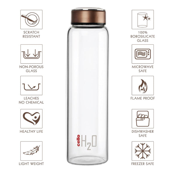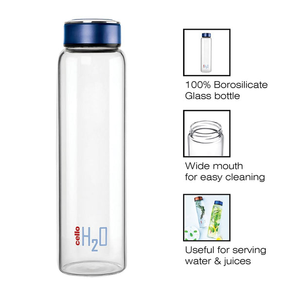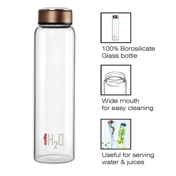 H2O Borosilicate Glass Water Bottle, 1000ml