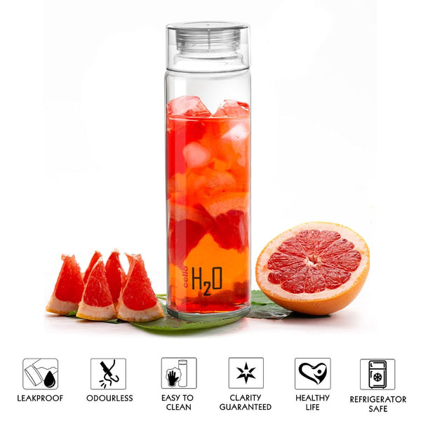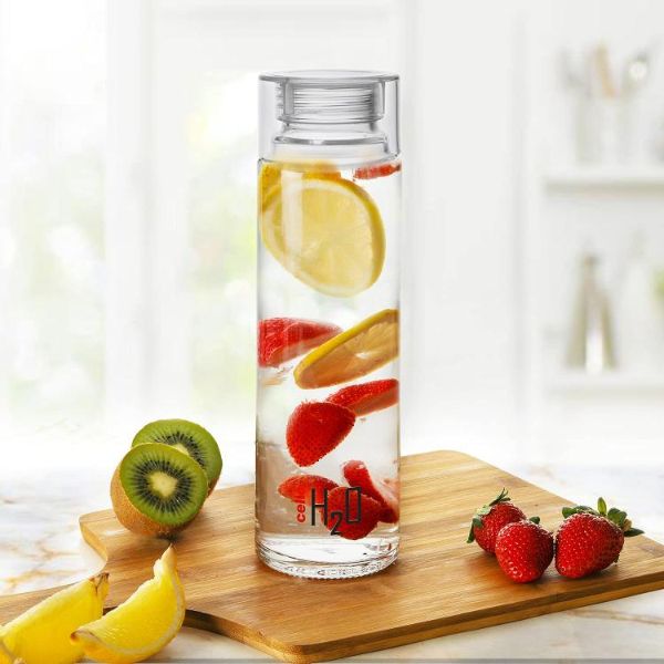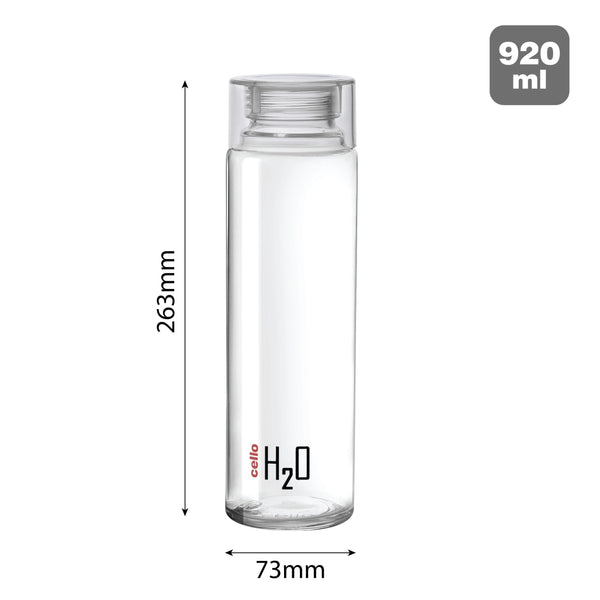 Introducing the H2O Glass Water Bottle, available in a variety of pack sizes (1 Piece, 3 Pieces, or 6 Pieces) and stylish colors including Black, Blue, Clear, and Red. Crafted from 100% food-grade sodalime glass, this 920ml bottle combines high clarity with portability, fitting easily into your backpack to keep you hydrated on the go. Safe for water and juice consumption, it's free from chemical leaching and reactions with your beverages. Made in India with superior quality materials, this trendy and sporty glass bottle is designed for durability, featuring a BPA-free, food-grade see-through plastic cap. Its lightweight and compact design fits perfectly in fridge door pockets while providing a secure grip. Sustainable and odor-resistant, it ensures your beverages remain healthy and safe, with a wide mouth for easy pouring, cleaning, and maintenance. Stay refreshed and stylish with the H2O Glass Water Bottle.