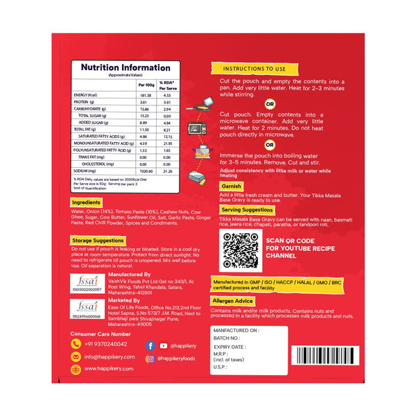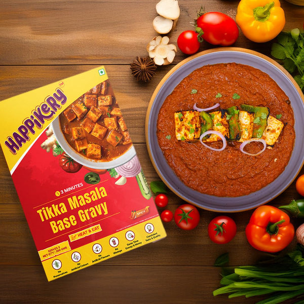 Happikery Tikka Masala Gravy 1 Kg (Veg Mix, Upto 5-7 Servings) l Restaurant Style, Master Chef Choice Gravy l Ready To Cook & Eat l Use as base for Dal Tadka, Aloo Mutter, Kadhai Paneer | Ready in 3 min