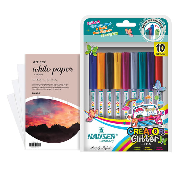 Hauser Creator Glitter Gel Pen With 6X6 Inches Colorissimi Paper Combo Pack