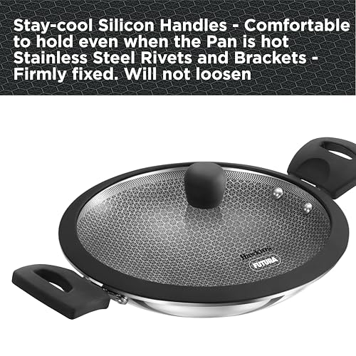 Hawkins 1.25L Breakfast Pan, Nonstick Triply Stainless Steel Appachatty with Glass Lid, Chetty Pan, Appam Patra, Honeycomb Round Bottom Small Kadai, Siler (NSA125G)