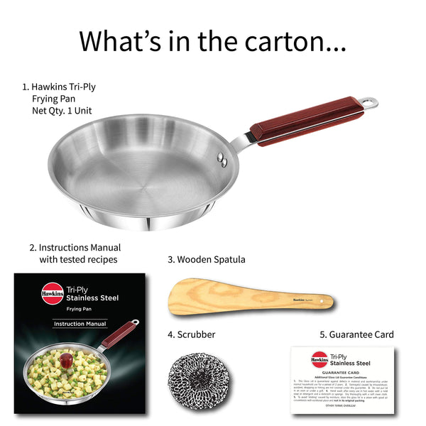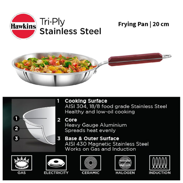 Hawkins 20 cm Frying Pan, Triply Stainless Steel Fry Pan, Induction Frying Pan, Small Frying Pan, Silver (SSF20)