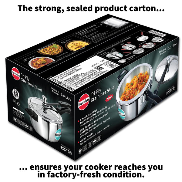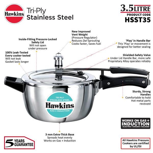 Hawkins 3.5 Litre Triply Stainless Steel Pressure Cooker, Inner Lid Cooker, Silver (HSST35)