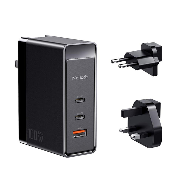 iEDS GaN 100W USB C Mini Charger 3 in 1 Multi 20W 30W 45W 65W 95W Compatible PD Charger Laptop USB Fast Charging Type C Adapter 100W Gan Charger (Black) (Cable not Included)