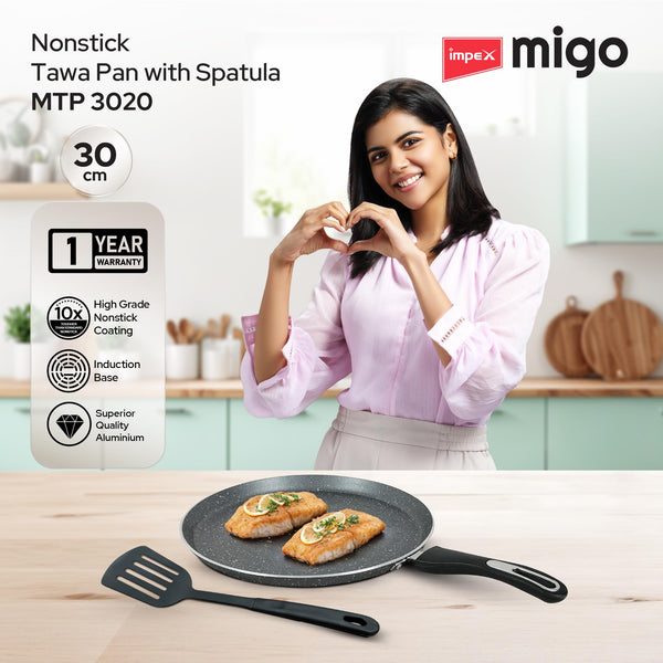 Impex Non Stick Tawa Pan with Spatula 30 cm Induction Base Tawa Pan Granite Finish Tawa Pan | Multi-Purpose Aluminium Tawa | Induction and Gas Stove Compatible Dosa Tawa
