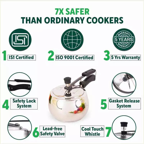 QuicKooker Stainless Steel Pressure Cooker, Premium Quality, Inner Lid, Tri-ply (3 Layer) Heavy Bottom, 100% Safe, ISI Certified, 5 Yr Warranty, Induction & Gas, 3/5L