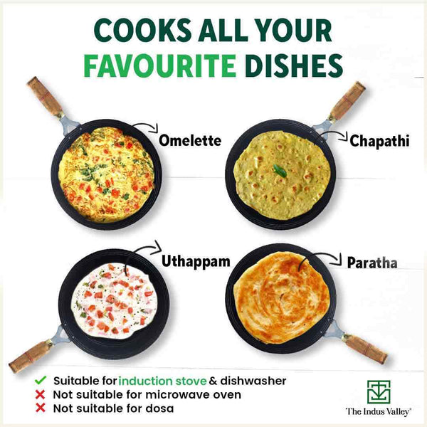 100% Pure Sheet Iron Tawa, Concave, Toxin-free, Seasoned, Wooden Handle, 25.5cm, 0.9kg
