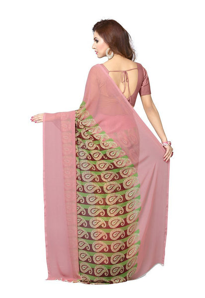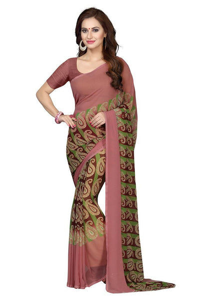 ishin Women's Faux Georgette Saree With Blouse Piece (Ishin-A-20065, Brown, Free Size)