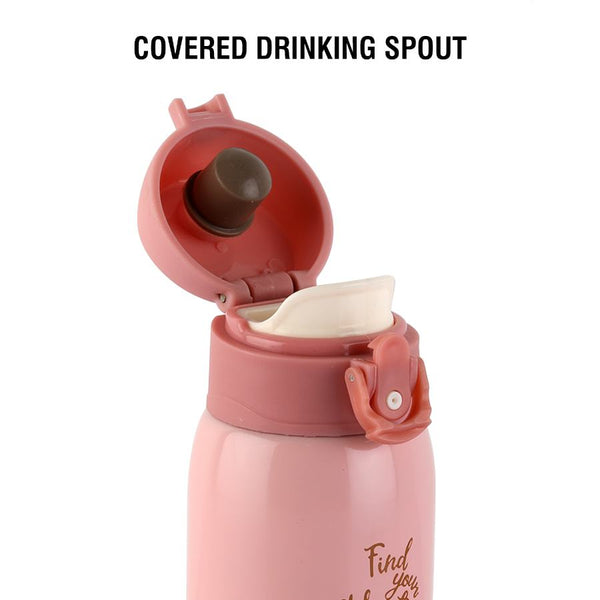 Introducing the Cello Kidzbee Junior Water Bottle, specially designed for your little explorers! With a perfect 375ml size, this bottle is ideal for preschoolers, making hydration on-the-go a breeze. Available in charming animal and bird designs and vibrant colors like Green, Pink, Orange, and Peach, it's as fun as it is functional.The Junior features a one-touch push button with a secure lock, ensuring easy access for tiny hands. Its covered easy-drinking spout makes sipping a delight. The double-wall vacuum insulation keeps beverages cool during hot summer adventures. Plus, the wide cap with a flip-top design guarantees a leak-proof experience, even when laid on its side or shaken. Keep your little ones refreshed and happy with the Cello Kidzbee Junior Water Bottle!