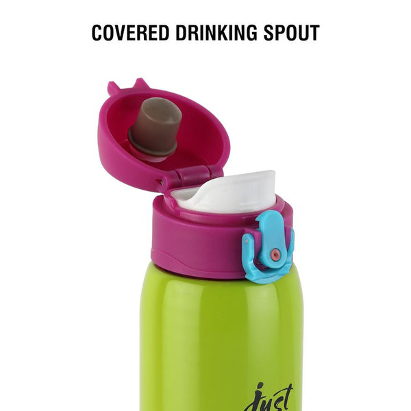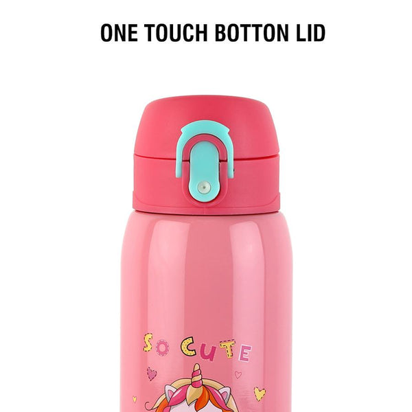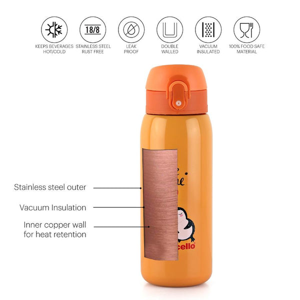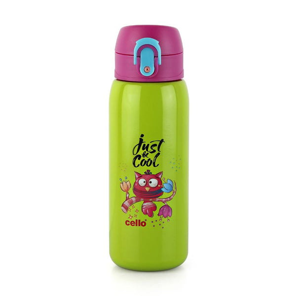 Introducing "Junior" by Cello Kidzbee - the perfect water bottle companion for your school-going kids! With a generous 475ml capacity, it's designed with adorable animal and bird motifs, available in vibrant Green, Pink, Orange, and Peach. This bottle fits seamlessly into any school backpack's bottle holder. Junior boasts impressive features: lightweight and compact, it offers a one-touch push button with a secure lock and a covered easy-drinking spout. Thanks to double-wall vacuum insulation, it keeps water cool on scorching summer days. Plus, the wide cap with a flip top ensures zero leaks, even when laid on its side or shaken. Make hydration fun and hassle-free for your little ones with Junior!