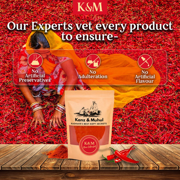 Kanz & Muhul Kashmiri Red Chilli Powder 450 Grams | Kashmiri Lal Mirch Powder | Mild Spicy, Authentic, Bright Red Colour | Organic Kashmiri Mirch | With No Added Preservatives | 450 Grams
