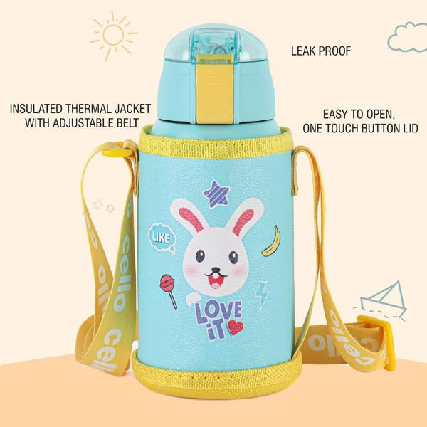 The Kido Kids Water Bottle, brought to you by Cello Kidzbee, boasts a generous 500ml capacity, making it the perfect hydration companion for your young ones. Its charm lies not just in its size, but also in its visually appealing design. Adorned with cute and delightful prints, this water bottle is an instant favorite among kids. Additionally, it comes complete with a matching jacket and an adjustable neck strap, making it not only practical but also a stylish accessory for your child.