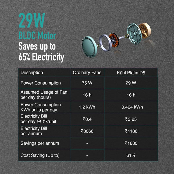 KUHL Platin D5 1200mm Stylish Power Saving BLDC Ceiling Fan with Remote | Down Light | 29W | 5 Star | Low Noise | IoT – Operate via Mobile & Alexa | Reverse Mode | Free Installation | White