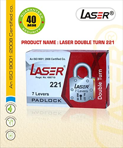 Laser 221 Rectangular (40 MM) 7 Steel Laser Double Chal Door Lock & 3 Key Padlock (Silver, Gold Finish)