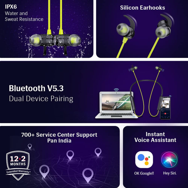 Lava Probuds N31 Bt in-Ear Neckband (Firefly Green,45+ Hrs Playtime,Enc,Fast Charge (10Min = 12Hrs),Ipx6 Rating,10 Mm Drivers,Bt V5.3 Pro Game Mode (60Ms Low Latency),&Dual Device Pairing),Wireless