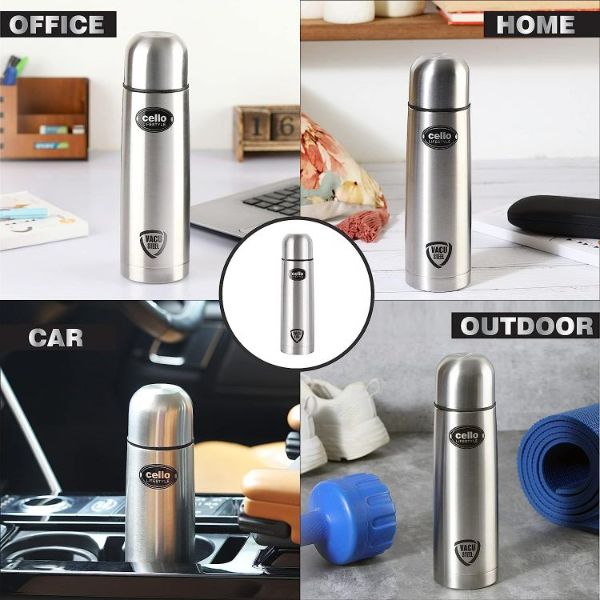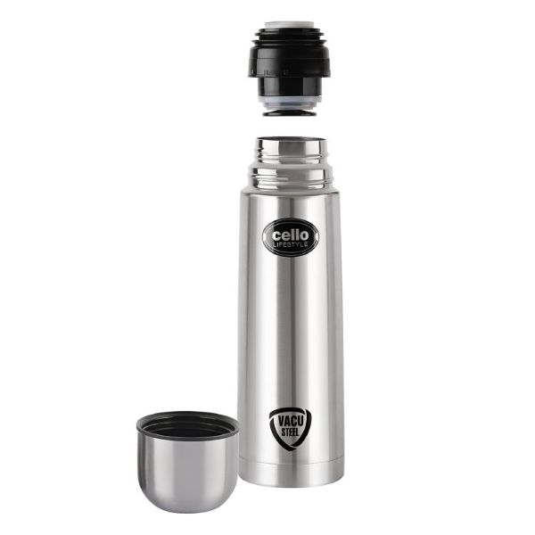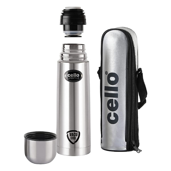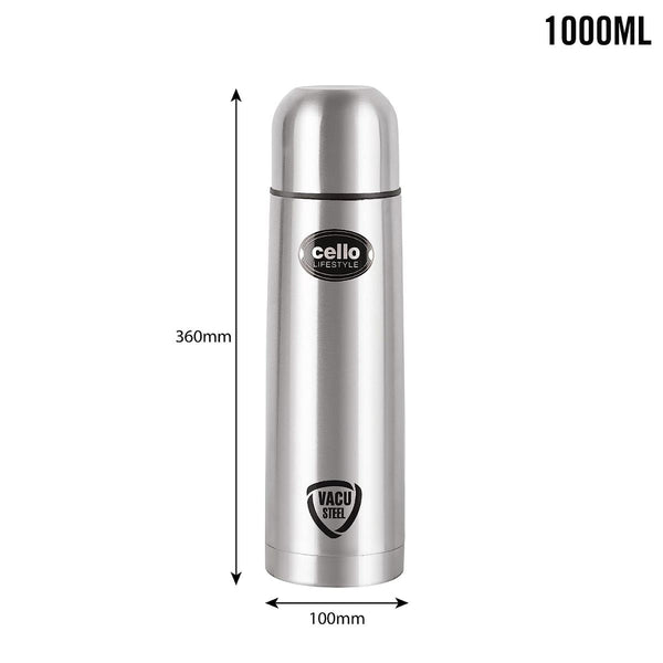 Introducing the Lifestyle Flask, a 1000ml Vacusteel Water Bottle by Cello, designed to elevate your tea or coffee experience, whether you're heading to the office or enjoying the great outdoors. Its 100% vacuum-insulated stainless steel body effectively maintains ideal beverage temperatures. The dual-purpose lid serves as both a cap and a cup, making it versatile for various drinks, including tea, coffee, or juice, suitable for both indoor and outdoor use. Plus, it's available with or without a jacket, providing flexibility to match your preference and style. Stay refreshed and enjoy your hot or cold beverages just the way you like them with the Lifestyle Flask in Silver.