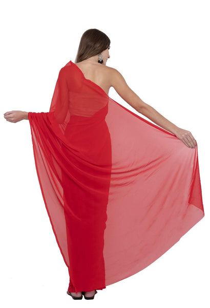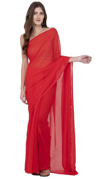 LIME Plain Georgette Red Saree With Blouse Piece For Women (Free Size)