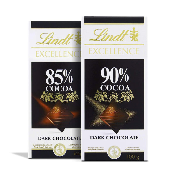 LINDT Excellence Dark 85% Cocoa Chocolate Bar and LINDT Excellence Dark 90% Cocoa Chocolate Bar | Pack of 2 | 100gm