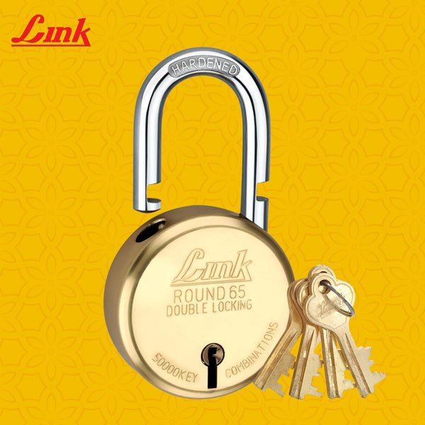 Link Exclusive Silver with Gold Festival Offer Buy Round 65 Brass Body (4 Keys) 8 Levers Padlock Get New Round 65 Free | Hardened Shackle | Double Locking | Buy 1 Get 1 Free | 15 Years Warranty.