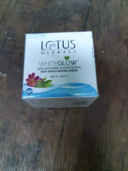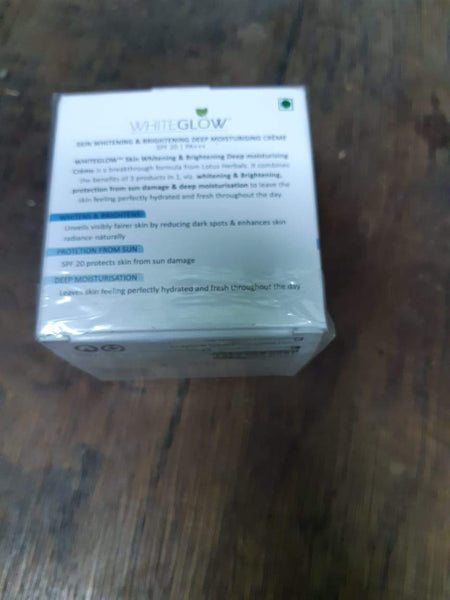 Details: Whiteglow Skin Whitening & Brightening Deep Moisturising Cream is a breakthrough formula from Lotus Herbals. It combines the benefits of 3 products in 1, whitening & brightening protection from sun damage & deep moisturization to leave the skin feeling perfectly hydrated and fresh throughout the day.