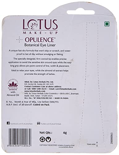 The Lotus Herbals Opulence botanical eyeliner is a beautifying cosmetic for the eyes, that comes in a 4g bottle. This eyeliner, unlike other synthetic eyeliners, contains botanical extracts and is a natural product to use. As this ophthalmologically-tested eyeliner is natural to apply, and its safety to the eyes is assured. It is also waterproof, ensuring that it stays on for longer.