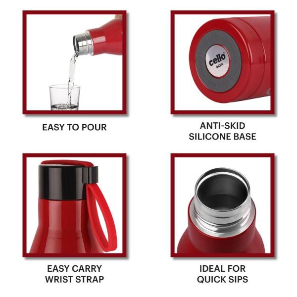 Introducing the Maestro Flask by Cello, a cutting-edge stainless steel water bottle that elevates your hydration experience. Engineered with patented vacuum technology, this Vacusteel flask ensures your beverages stay refreshingly cold or piping hot for hours on end. Its double-walled insulation, coupled with an inner copper coating and thermoseal technology, guarantees superior temperature retention. With a spill-free flip top lid and a stylish design, it's perfect for your on-the-go lifestyle, whether you're at the office, home, picnicking, or camping. Crafted from high-grade stainless steel, this reusable bottle is leak-proof, durable, and rust-proof, making it a must-have for both self-use and gifting.