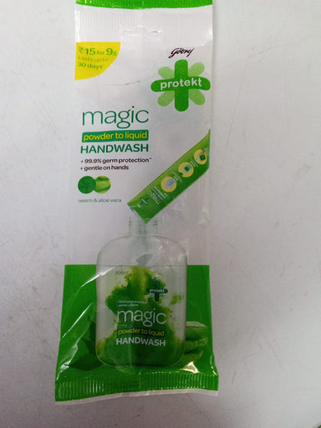 What makes Godrej protekt mr. magic hand washes so magically? Well, it's the first-ever powder-to-liquid handwash. It is extremely affordable as compared to other handwashes in the market. Here’s how: In just 3 easy steps you get a full bottle of handwash that lasts up to 30 days! What's more? With the power of Neem and Aloe Vera, protects your hands from germs and leaves your skin feeling soft. Mr. magic's handwash is not just green in color, it’s also green in nature. If all Indian households that use liquid handwash refills switch to Godrej Protekt Mr. Magic refills, it would result in a greener, better world. So, add, pour, shake and wash to stay protected.