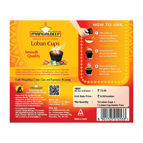 Mangaldeep Loban Cups - Pure & Natural - Rich Aroma (12 Cups)