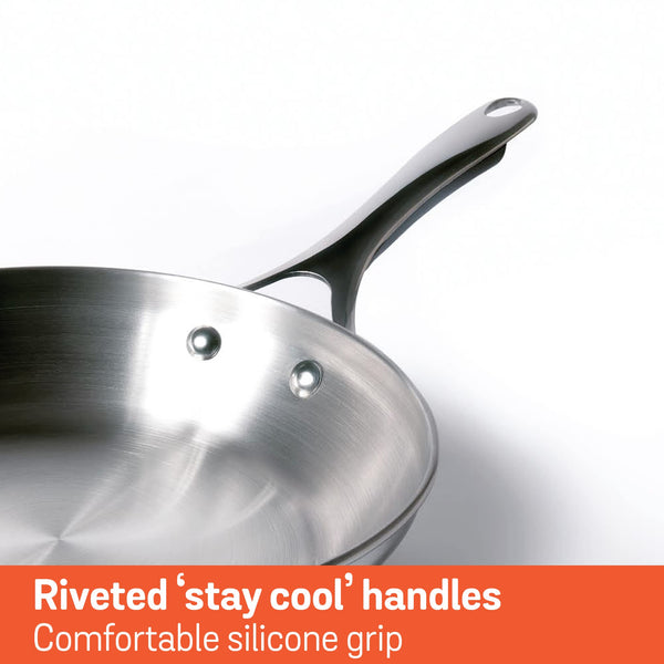 Details: High-grade proprietary nickel free has 0% Nickel, 0% Molybdenum, 0% Copper and is 100% safe for consumption. Other variants like SUS304 have 8% to 10.5% Nickel, and traces of Manganese, Sulphur and Phosphorus. High grade proprietary nickel free stainless steel from Nippon Corp. Japan that will last you with ultimate strength and durability as it has superior pitting resistance than any other ordinary stainless steel cookware. Impact bonded base for even heat distribution.Suitable for all cooktops including induction. Cast stainless steel riveted handle with silicone grip.Meyer provides the warranty of 10 years on its Select range.