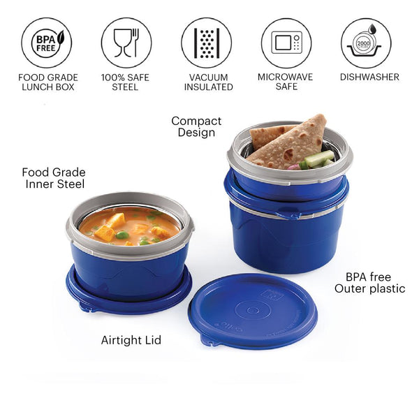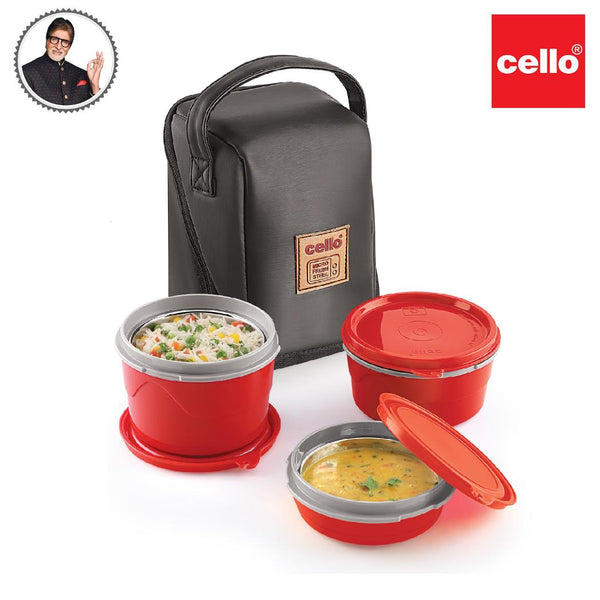 Experience the convenience of healthy eating with the MF Micro Insulated Lunch Box, a set of three insulated lunch containers designed to revolutionize your mealtime routine. With these BPA-free, FDA-approved lunch boxes from Cello, you can enjoy a well-balanced meal wherever you are. These lunch boxes feature a liquid-tight silicone seal on the lid, making them ideal for office, school, and travel, while their compact design ensures easy portability.