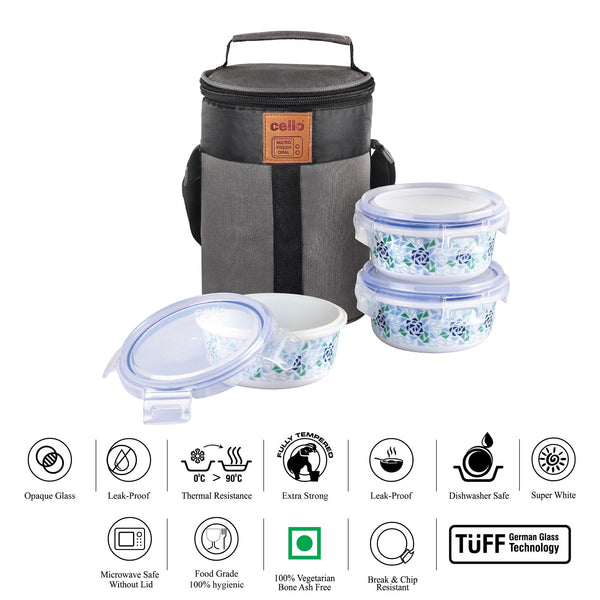 The Cello Mosaic Rose Opalware Lunch Box with Jacket is designed to enhance your dining experience. Crafted from non-see-through Opal Glass, it guarantees privacy by preventing any unwanted glances into your meal. Its food-grade quality ensures safety, and it's a breeze to clean, compatible with both microwave and dishwasher use.