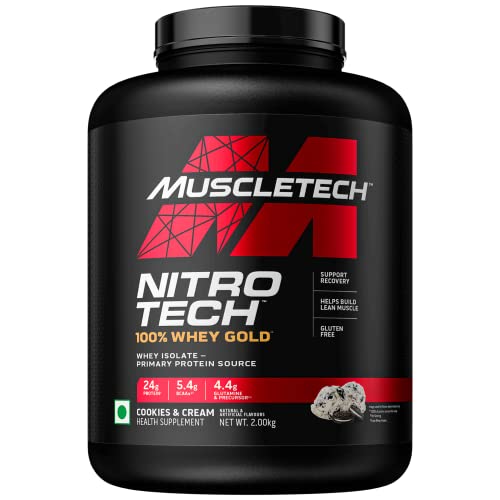 MuscleTech Nitrotech 100% Whey Gold Protein Powder Whey Isolate Primary Protein Source Support & Recovery Vegetarian Cookies & Cream- 1.81kg